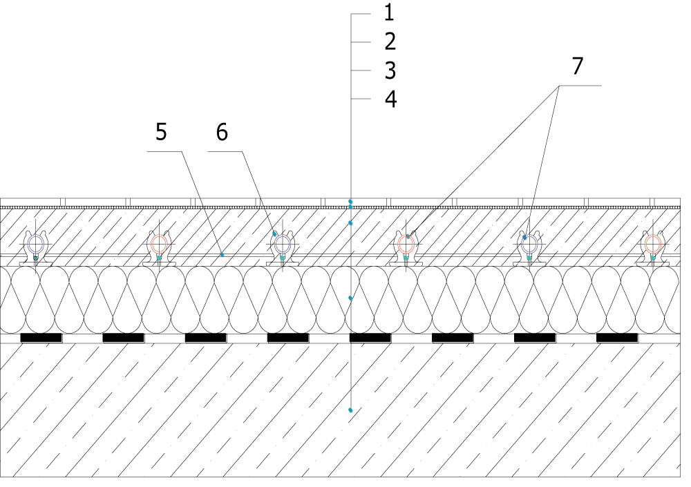 Obr. 1 Systém s rúrkami v roznášacej vrstve (mokrý systém)