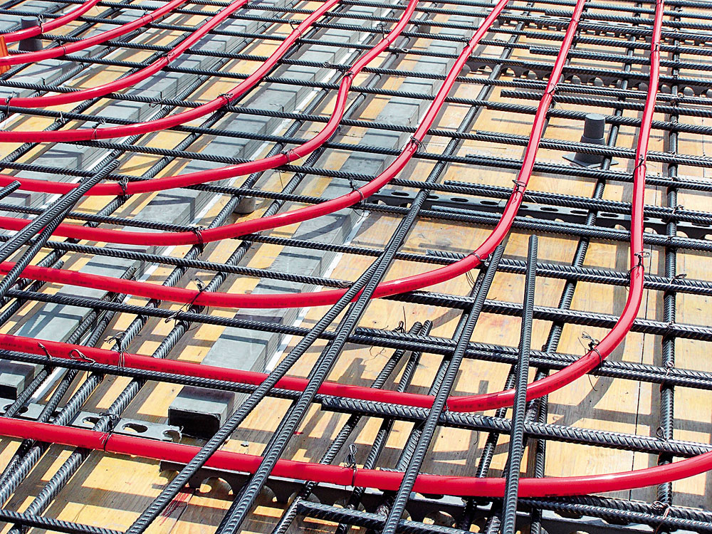 Obr. 2 Systém s rúrkami zabudovanými v masívnej betónovej konštrukcii pred betonážou [4]