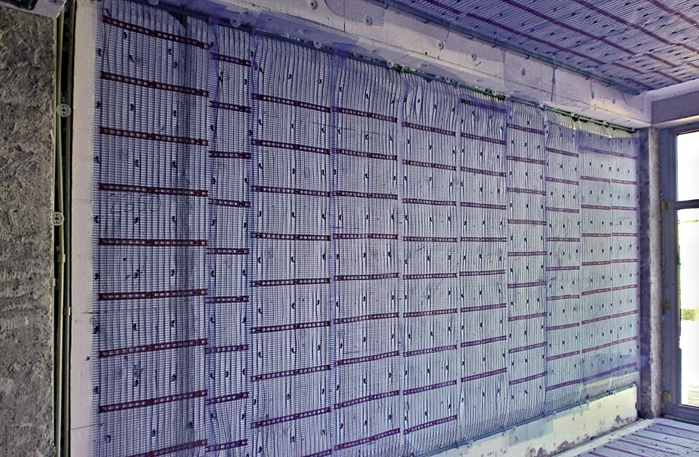 Obr. 6 Kapilárne rohože inštalované v podlahe, stene a strope, polyfunkčná budova EAST Point