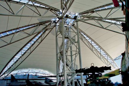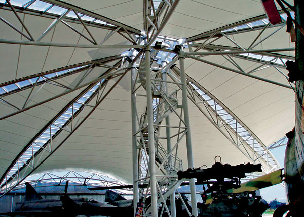 Nosnú konštrukciu galérie tvorí systém oceľových priehradových rúrkových nosníkov, ktoré sú zachytené lanovými ťahadlami. Plochy plachiet spočívajú na nosnej konštrukcii. Modul podpôr vychádza zo zámeru maximálneho zosúladenia s modulmi ostatných hangárov leteckého múzea a z minimalizácie podpôr vnútri dispozície.
