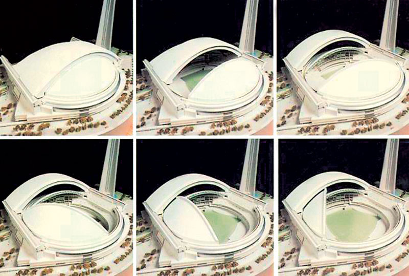 V Európe je známy štadión Amsterdam Arena z roku 1996 s kapacitou 51 200 divákov. Časť strešnej konštrukcie s rozmermi 36 × 105 m sa môže v priebehu 20 minút zavrieť alebo otvoriť. Medzi najznámejšie konštrukcie s otvárateľnou strechou na svete patrí Sky Dome v Toronte, ktorú dokončili v roku 1989. Strecha je otvárateľná až na 91 % (za 20 minút). Najväčšie rozpätie konštrukcie je 205 m. Kapacita štadióna pri futbale je 55 190 a pri koncertoch až 70 000 návštevníkov.