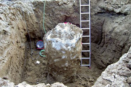 Ílovité horniny sú najmenej vhodné na použitie PI. Za optimálny návrh rozmiestnenia a počtu pilierov PI na sanáciu základového podložia sa navrhli zhotoviť tri skúšobné piliere (obr. 2) a overiť ich deformačné vlastnosti a nosnosť zaťažovacími skúškami (obr. 5) podľa metodiky pre veľkopriemerové pilóty a overiť aj ich mate­riálové vlastnosti.