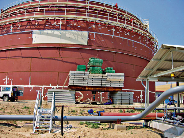 Na zaistenie potrebných úžitkových vlastností zásobníka sa investor rozhodol vykonať sanáciu základového podložia. Vyslovil však podmienku, že nesmie prísť k zásahu do konštrukcie, pri ktorom by sa narušilo oceľové dno nádrže, t. j. sanačné práce sa musia urobiť z vonkajšieho priestoru nádrže, prípadne z medzipriestoru medzi plášťom nádrže a plášťom ochrannej nádrže. Na základe prešetrenia podkladov a poznatkov sa vyznačili chyby v návrhu a vo vyhotovení základovej konštrukcie zásobníka: Betónové pilóty v základovom podloží nemôžu v žiadnom prípade plniť funkciu hlbinného základu alebo výstuhy mäkkých vrstiev – ich hlavy sa nachádzali na úrovni plochy pod poddajnou zemnou doskou a korene vôbec nedosahovali do tuhších a nosnejších vrstiev základového podložia. Poddajná zemná doska základovej konštrukcie svojou zanedbateľnou tuhosťou nemôže zaistiť rovnomerné vyrovnanie deformácií.