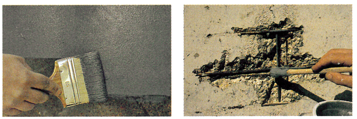 Základným krokom sanácie železobetónovej konštrukcie je ochrana oceľovej výstuže. Na výstuž sa preto nanesie adhézny mostík. Nanáša sa strojovo alebo štetcom. Pri strojovom nanášaní možno vyrovnávaciu maltu nanášať okamžite, pri ručnom až po zavädnutí adhézneho mostíka (30 až 40 minút).
