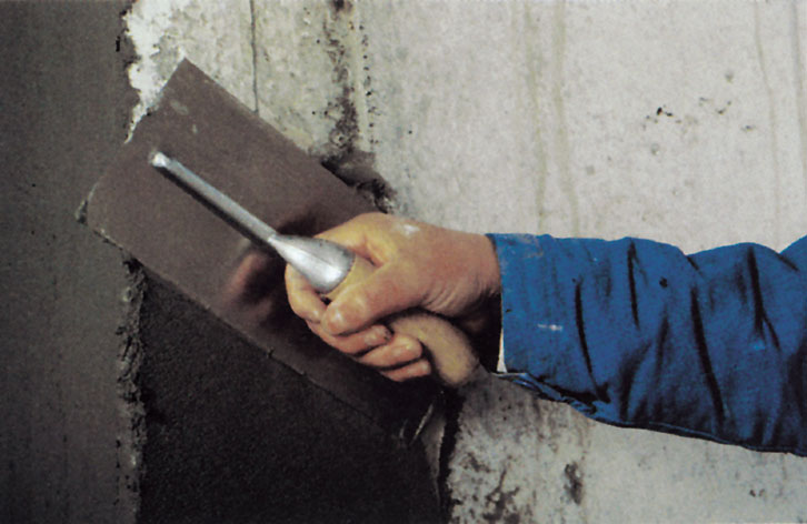 Po miestnych, respektíve celoplošných hrubých opravách sa na vyschnutý povrch (najskôr po 6 dňoch) nanesie opravná malta. Po jej prebrúsení vznikne rovný podklad vhodný na nanesenie fasádneho náteru. Nanáša sa oceľovým hladidlom.