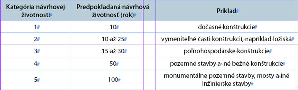 Tab. Návrhové životnosti stavieb [2]