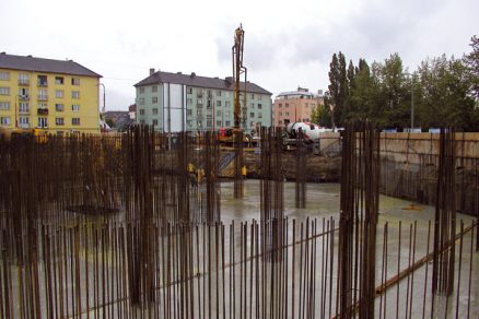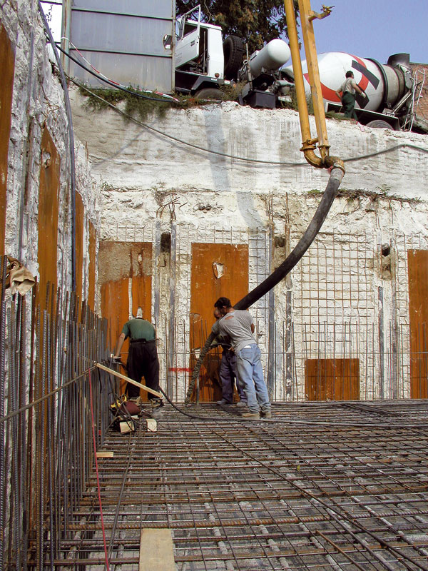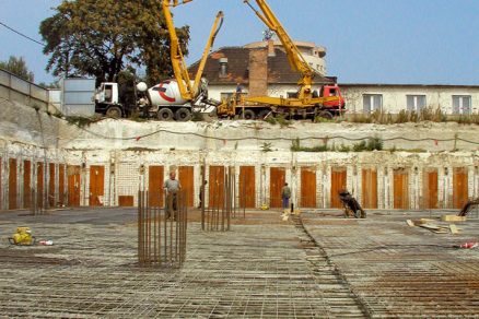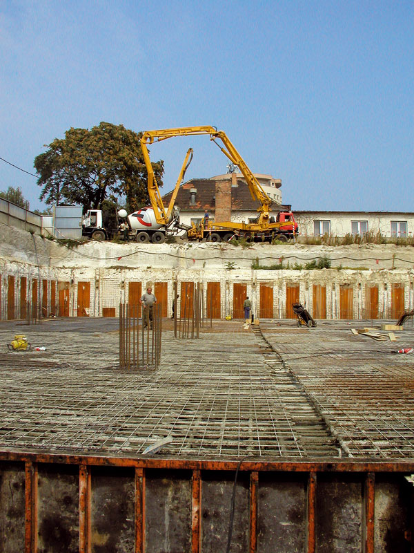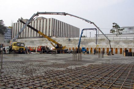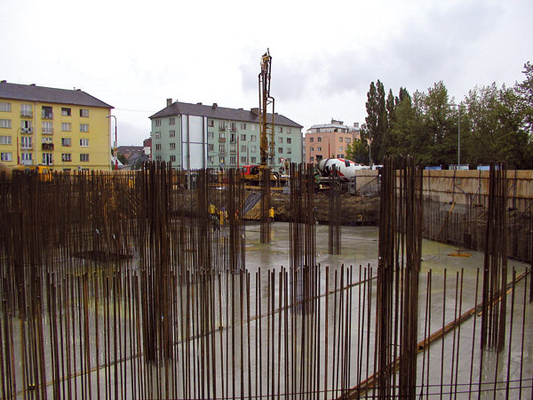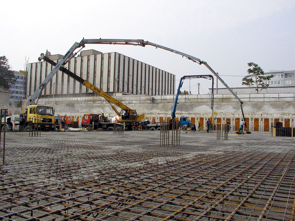 Dobrá organizácia dopravy a čerpadiel betonu Ošetrenie základovej konštrukcie prykrytím parotesnými plachtami.