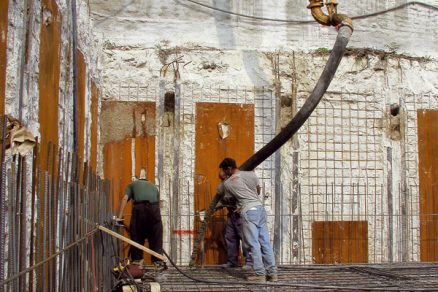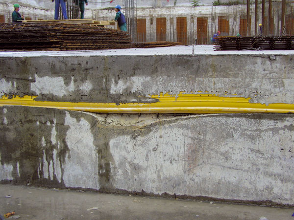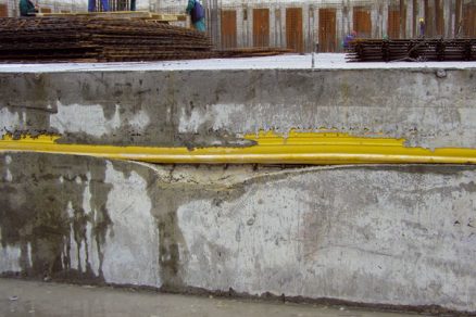 Ošetrenie základovej konštrukcie nástrekom ošetrovacím prípravkom. Detail – ak je betón zle zavibrovaný, vyskytnú sa v konštrukcii neželateľné kaverny.