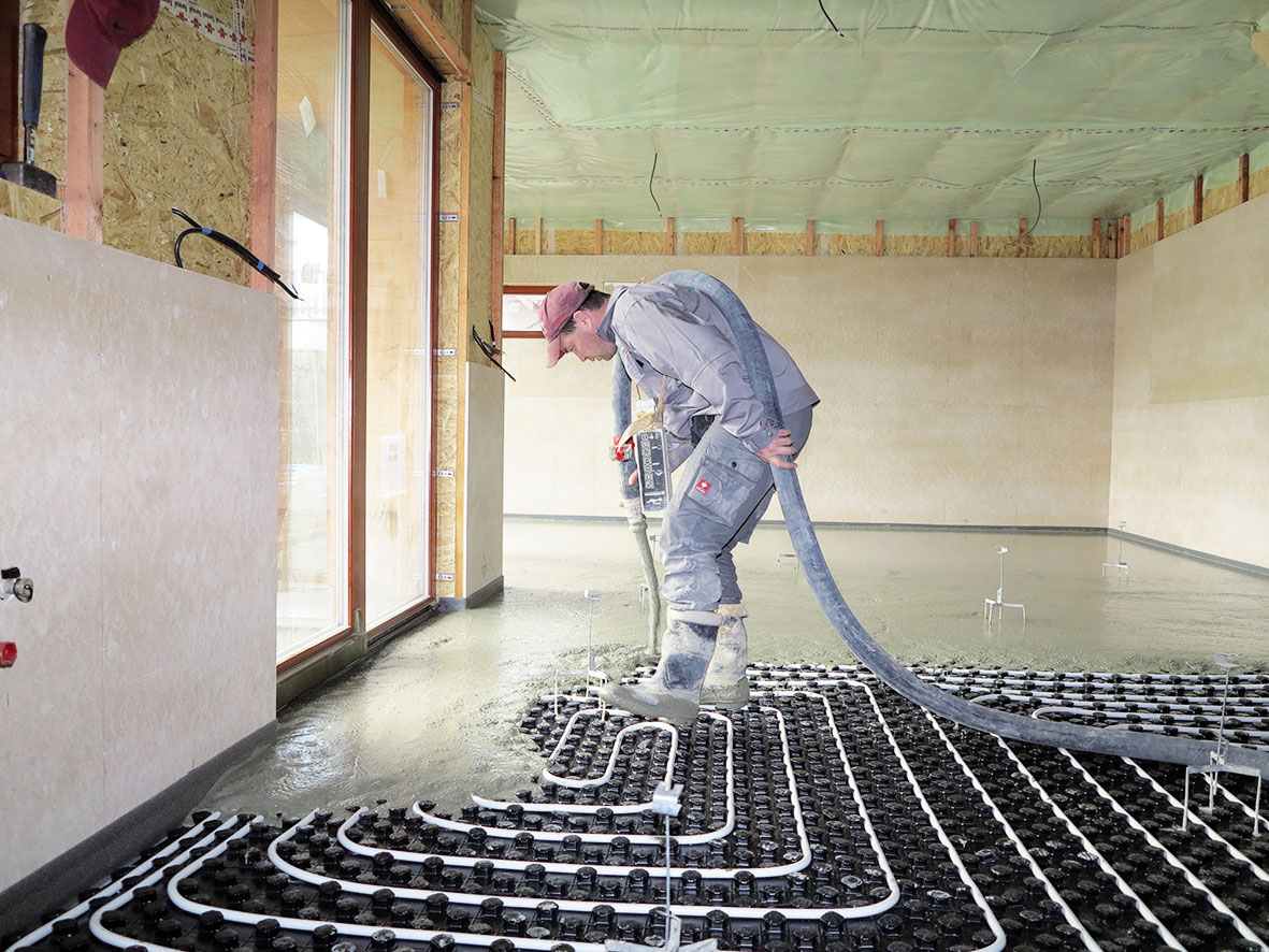 Liate podlahy sa dopravia na stavbu z betonárne v čerstvom stave v autodomiešavači s objemom 8 m3. Nie sú náročné na miesto a nevyžadujú pripojenie na vodu a elektrinu.