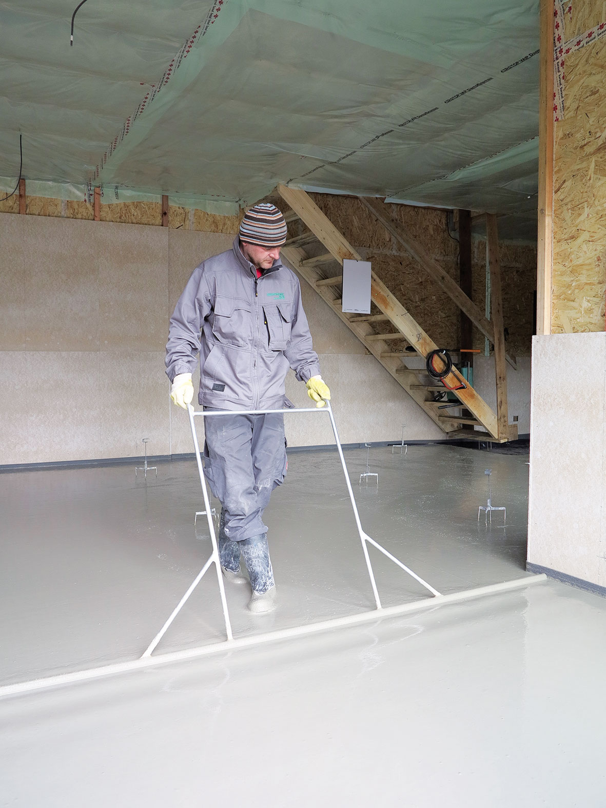 - Náradie a pomôcky: trojnožky, hadicová vodováha, stavebný laser, odrazová tyč, rozlievacia doska, maltový kužeľ, mobilné piestové čerpadlo, hadice s priemerom 50 mm, nivelačná hrazda, postrekovač, elektrická podlahová brúska, vlhkomer