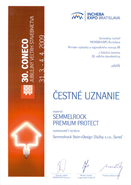 Spoločnosť Semmelrock získala na tohtoročnom veľtrhu Coneco za systém Semmelrock Premium Protect® čestné uznanie.