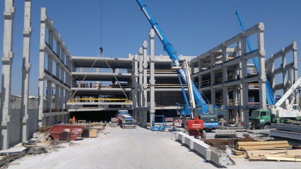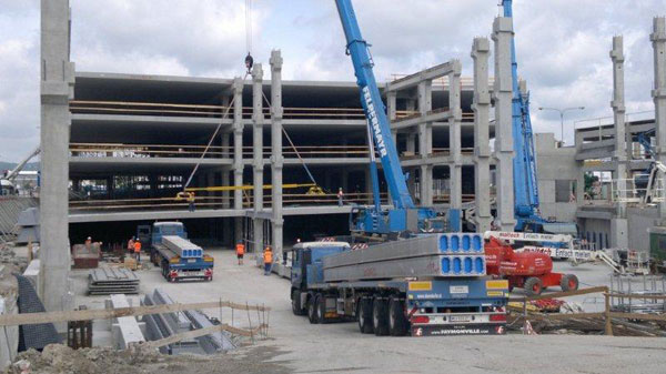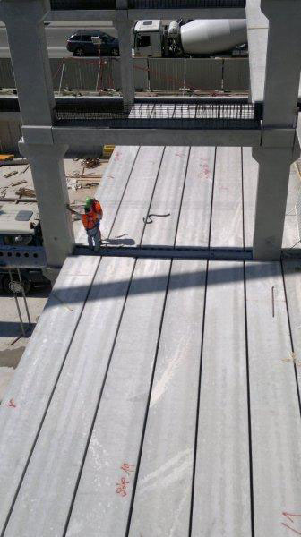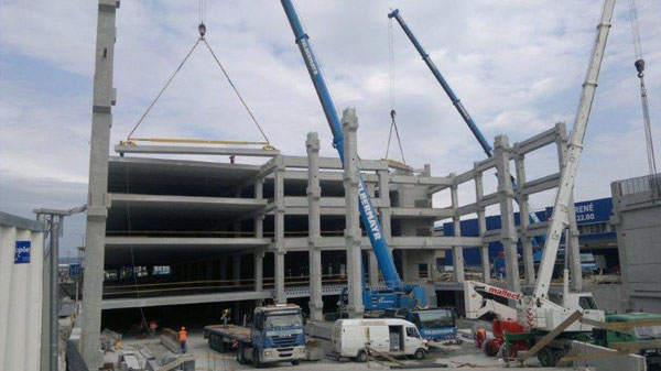 Montáž stropných panelov, kombinovaný skelet, betónové prievlaky a deltanosník na 1. PP za účelom vytvorenia bezprievlakového stropu