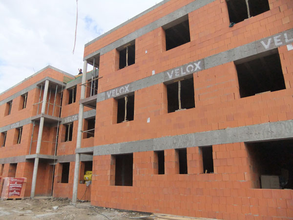 2. Nízkoenergetický bytový dom 24 bj v Moldave n. Bodvou realizuje MON- DREVs.r.o.,Moldava n. Bodvou VELOX-WERK s.r.o. na realizáciu dodal 1400m2 obvodových stien AL37, 2 000 m2 vnútorných nosných stien LL22, a a 2 100 m2 monolitických rebrových stropov 170+50