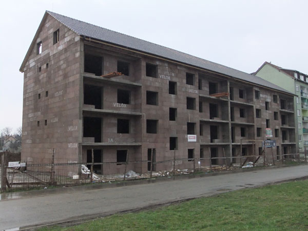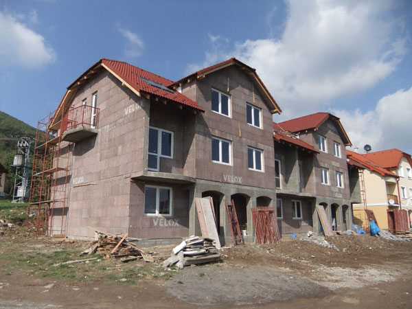 1 Bytový dom 2x10bj vo Veľkom Ďúry, stavbu realizuje spoločnosř TIMOTHY, s.r.o., Prešov. VELOX-WERK s.r.o. dodá debnenie vencov (630 bm), debnenie prekladov a prievlakov (250bm). Debnenie schodísk, monolitických doskových stropov a debnenie rímsy a stúpačiek bude zo štiepkocementových dosiek VELOX.