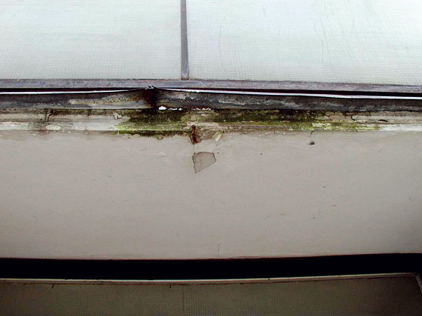 Poruchu spôsobuje napríklad aj zle uchytené alebo porušené zábradlie, prípadne chýbajúce oplechovanie (obr. 5).