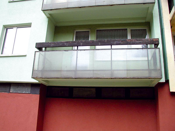 Pri balkónoch z 20. storočia je spravidla možná ich reprofilácia. Aj keď je nosná betónová konštrukcia degradovaná, betón má ešte vyhovujúce vlastnosti (obr. 2).