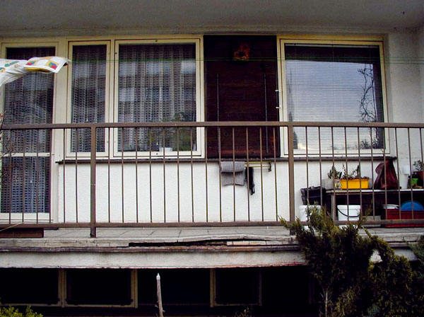 - ukotviť repasované alebo nové zábradlie pripevnené z čela alebo zospodu balkónovej dosky.