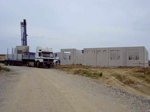 Výstavba administratívnej budovy (tehelňa Leier v Petrovanoch) použitím prefabrikovaných dielcov. Administratívna budova bola postavená za 20 dní vrátane položenia strešnej krytiny. Realizácia samotnej prefabrikovanej časti trvala 14 dní.