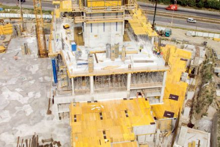 Súčasná výstavba 22-poschodovej veže komplexu Lakeside park v bratislavskej mestskej časti Nové Mesto predstavuje prvú zo štyroch etáp. Súbor budov s celkovou plochou 88-tisíc m2 bude po dobudovaní slúžiť ako obchodné a administratívne centrum. Stavba tohto komplexu je charakteristická náročnosťou nielen pri dodávaní materiálu na stavbu, ale aj pri riešení zadebňovania jednotlivých konštrukcií.