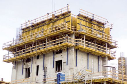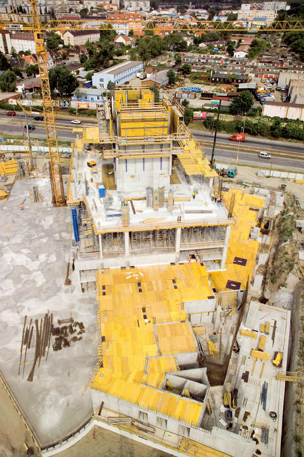 Novinkou, ktorá mala na tejto stavbe premiéru, bolo samošplhacie debnenie nasadené na jadro výškovej stavby. Dôvodom jeho nasadenia bol nedostatočný počet žeriavov (dva vežové a dva autožeriavy) a snaha skrátiť termín výstavby. I keď sa na vertikálny presun debnenia vnútorných šácht použili žeriavy, značnú časť presunu (debnenia veľkej vnútornej časti a obvodu jadra) riešila hydraulika.