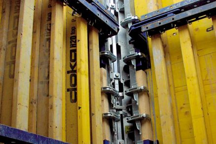 | Debnenie jadra výškovej časti | Plošina vytvorená zo šachtových teleskopických nosníkov, na ktorej je položené debnenie menších vnútorných šácht |