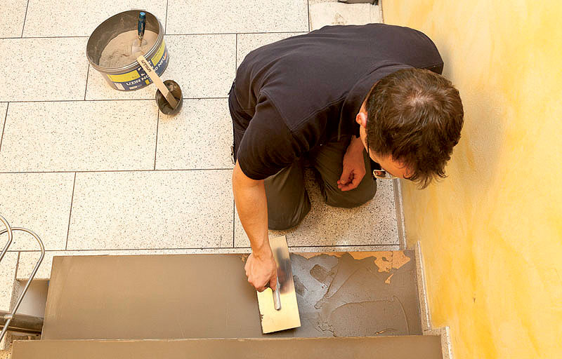 Staré ošúchané schodiskové stupne a podesty nepredstavujú len estetický problém, ale aj bezpečnostné riziko. Na opravu porušených miest, dier a výtlkov v podklade je vhodné použiť jemnozrnnú opravnú stierkovaciu maltu, s ktorou sa vytvorí uzavretý jemný povrch – ten je vhodný na lepenie podlahoviny.