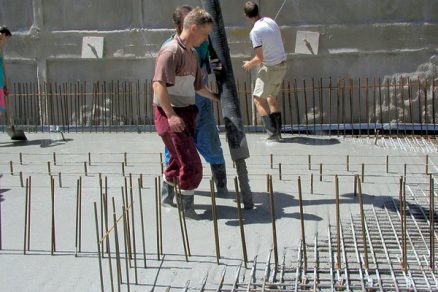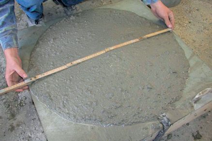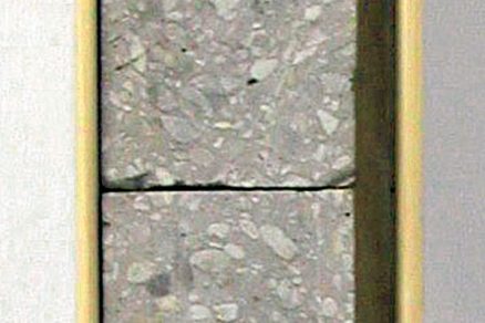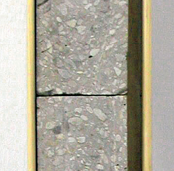 | Obr. 1 Rez skúšobným hranolom zo SCC, ktorý dokumentuje, že po výške hranola nenastala segregácia betónu | Obr. 2 Schopnosť SCC pohybovať sa i na väčšie vzdialenosti |