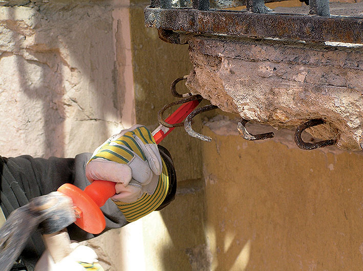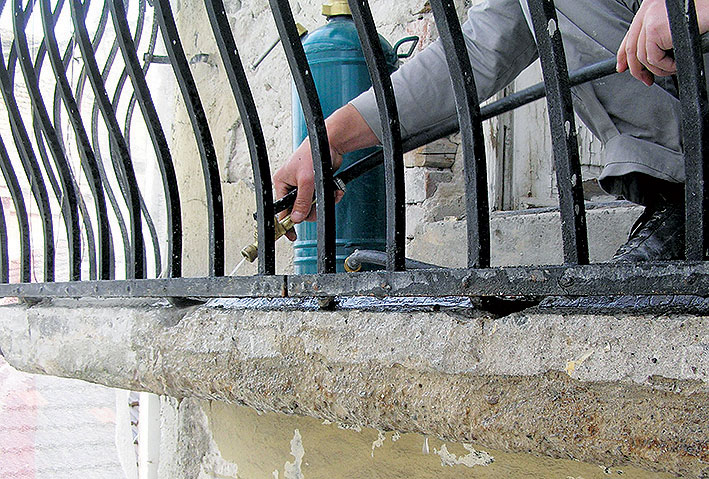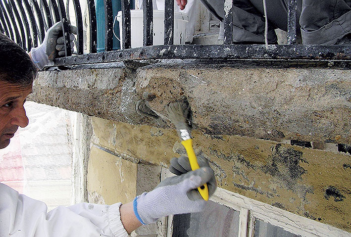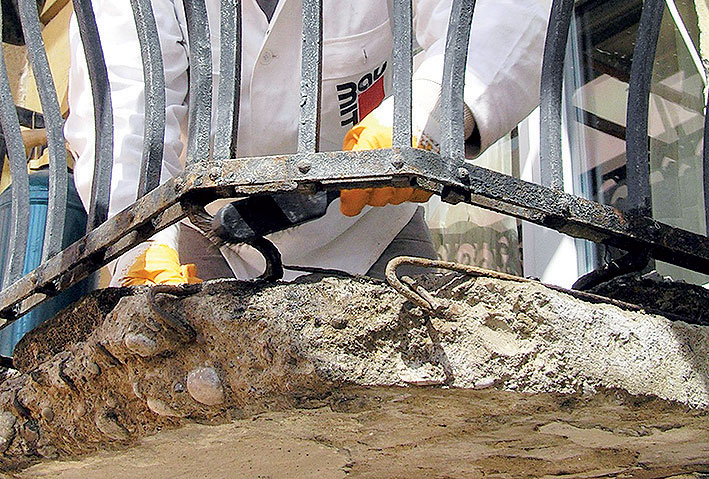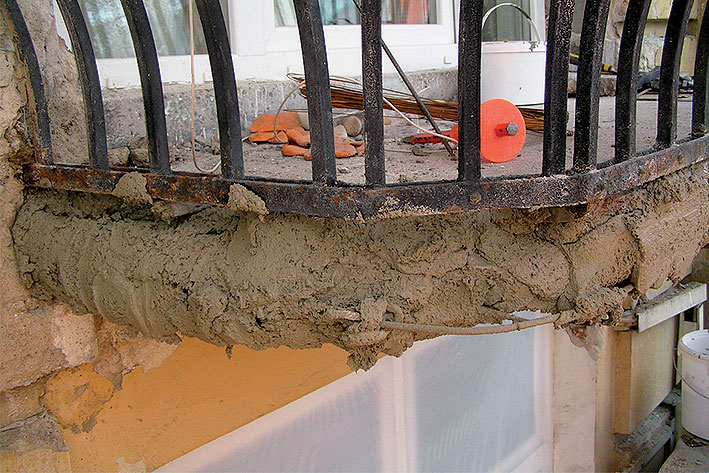 Odlupujúce a nesúdržné časti povrchu balkónovej dosky treba odstrániť pomocou dláta, kladiva alebo sekacieho kladiva až na zdravý betón.