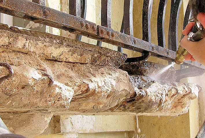Následne sa celý podklad očistí vysokotlakovým prúdom vody, aby sa z povrchu odstránil prach a iné nečistoty, čím sa dosiahne dobrá priľnavosť vrstiev sanačného systému.