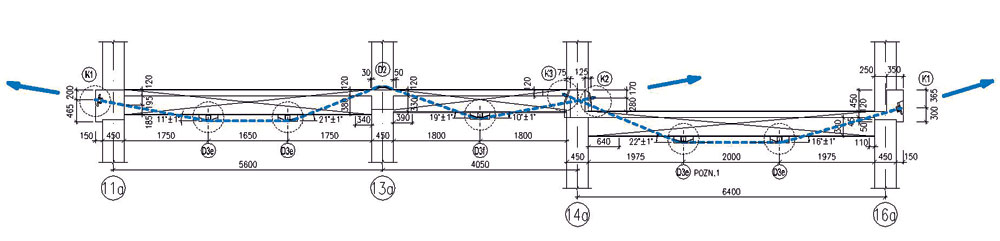 Obr. 8 Trajektória vedenia externej nesúdržnej predpínacej výstuže