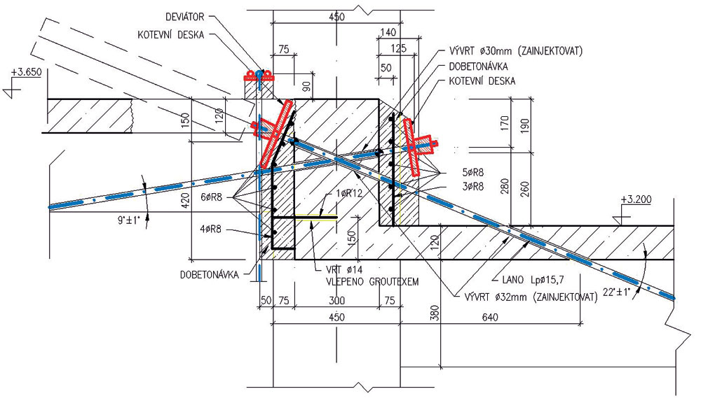Na správnu realizáciu zosilnenia predpätím externými lanami má hlavný vplyv príprava dráhy lana, a to: