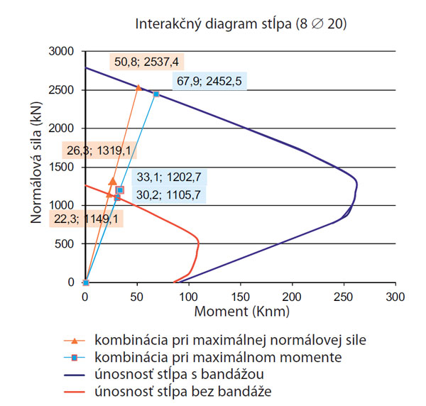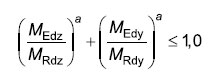 - pri danej normálovej sile v prípade posúdenia kombinácie, ktorá vyvodí najväčšiu interakciu momentov vo vzájomne kolmých smeroch podľa vzťahu daného ČSN 1992-1-1
