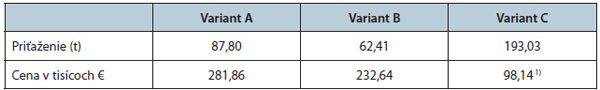 1) V cene variantu C nie je zahrnuté zosilnenie základov, ktoré by sa muselo realizovať z dôvodu značného nárastu stáleho zaťaženia od prídavnej zosilňujúcej konštrukcie (nárast ceny približne o 25 %).
