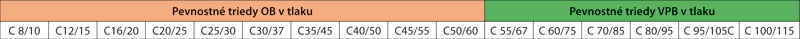 Všetky doterajšie, ako aj súčasné normové predpisy v oblasti betónu a betónových konštrukcií definujú a rozlišujú kvalitu betónu podľa tried. Označenie triedy betónu udáva hodnoty jeho pevnosti v tlaku. Najvyššia trieda betónu na úrovni hodnôt 50, resp. 60 MPa sa považuje za hornú hranicu tried obyčajného betónu (OB) a zároveň za spodnú hranicu VPB. Európska norma [3] zaviedla klasifikáciu 16 pevnostných tried hutného a ťažkého betónu od pevnostnej triedy C 8/10 až po najvyššiu pevnostnú triedu C 100/115 (tab. 1). Do šiestich najvyšších tried sa zaraďujú VPB. Označenie triedy betónu písmenom C a zlomkom znamená pomer charakteristickej pevnosti v tlaku fck, cyl, zisťovanej na valcoch s priemerom 150 mm a výškou 300 mm vo veku 28 dní a fck, cube, zisťovanej na kockách s hranou 150 mm.