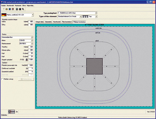 Výrobcovia šmykových výstuží sú vybavení väčšinou vlastným firemným softvérom, ktorý umožňuje projektantom rýchle a jednoducho navrhovať výstuž v zmysle technických osvedčení (obr. 7).
