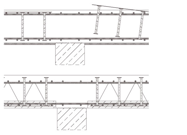 Vystuženie dosky proti pretlačeniu sa väčšinou zabezpečuje pomocou zvislých výstužných prútov, ktoré treba okolo stĺpa umiestniť vejárovitým spôsobom (obr. 3).