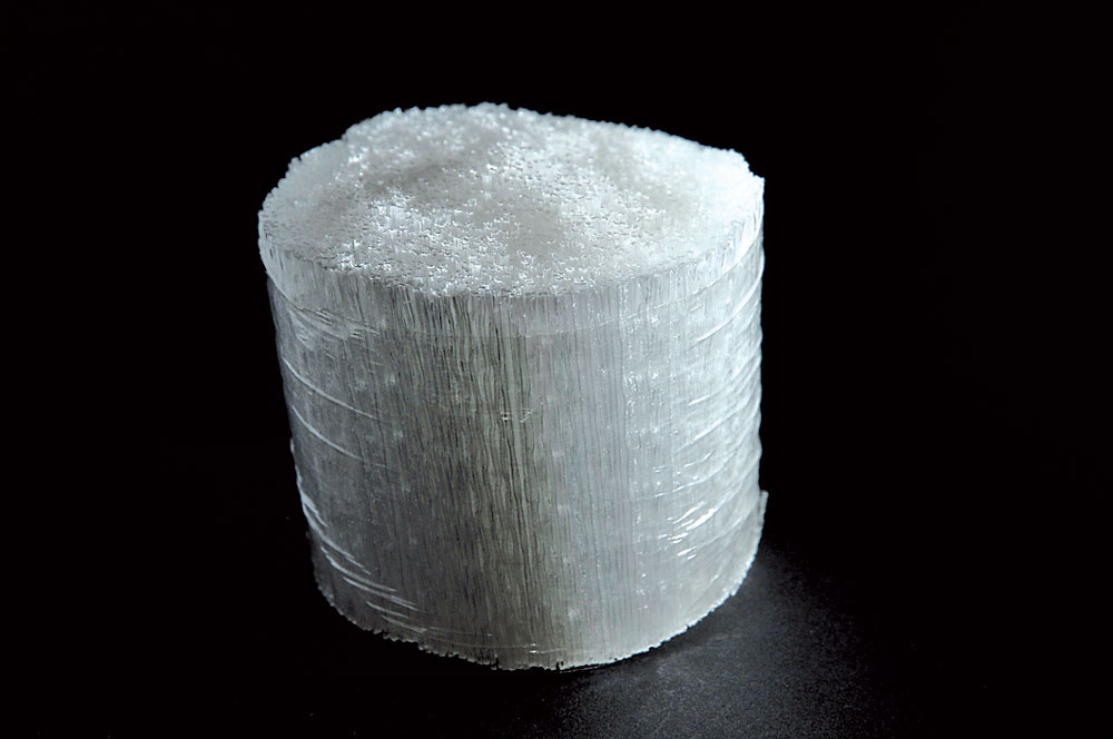 Druhú oblasť použitia zameranú na celistvosť a trvanlivosť konštrukcie možno bez akýchkoľvek pochybností vztiahnuť priamo na syntetické (polymérové) vlákna (STN EN 14889-2). Syntetické vlákna sa rozdeľujú podľa technológie výroby na monofilamentné a fibrilované (obr. 6). Zatiaľ čo monofilamentné sú na prvý pohľad jemné a pripomínajú vlákna buničiny, fibrilované vlákna sa vyrábajú napríklad sekaním „fólie“ polyméru na vlákna s požadovanými rozmermi. Technológia výroby a súvisiace rozmerové vlastnosti majú kľúčový vplyv na rovnomernosť distribúcie vlákien počas miešania, a teda aj na účinnosť pri obmedzovaní prejavov objemových zmien betónu [7]. Ak by sa chcel účel použitia polymérových vlákien zjednodušiť, potom by sa navrhovali na obmedzovanie vzniku zmrašťovacích trhlín v betóne. Logicky by sa teda mohli pridávať do betónu tých stavebných konštrukcií, ktoré sa budú realizovať v letnom období, špeciálne ak budú veľkou plochou vystavené prostrediu s nízkou relatívnou vlhkosťou. Zvláštnu pozornosť a zváženie použitia syntetických vlákien si vyžadujú stavebné konštrukcie, ktoré budú mať celospoločenský význam, resp. očakáva sa od nich dlhá životnosť, a to najmä ak budú vystavené agresívnemu prostrediu, ktoré by degradáciu stavebnej konštrukcie prostredníctvom zmrašťovacích trhliniek rapídne urýchľovalo. Vo všeobecnosti sa odporúča dodržať dávkovanie minimálne 0,9 kg/m3, no ukazuje sa, že so zvyšujúcou sa jemnosťou vlákien (hlavne pri monofilamentných) možno bezpečne znížiť dávku na približne 0,6 kg/m3 [7].