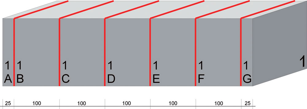 Obr. 10  Schéma priečnych rezov skúšobnými telesami Obr. 11  Príklad primárneho grafického výstu­pu fotogrametrie
