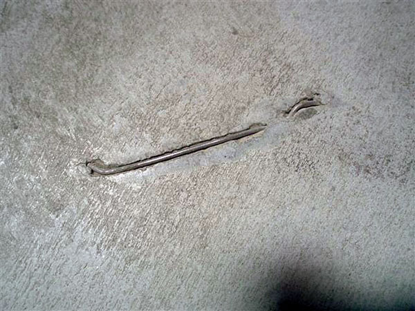 | Nehomogénne rozptýlenie oceľových vlákien | Detail poruchy povrchu konštrukcie (vyčnievajúce oceľové vlákno) |