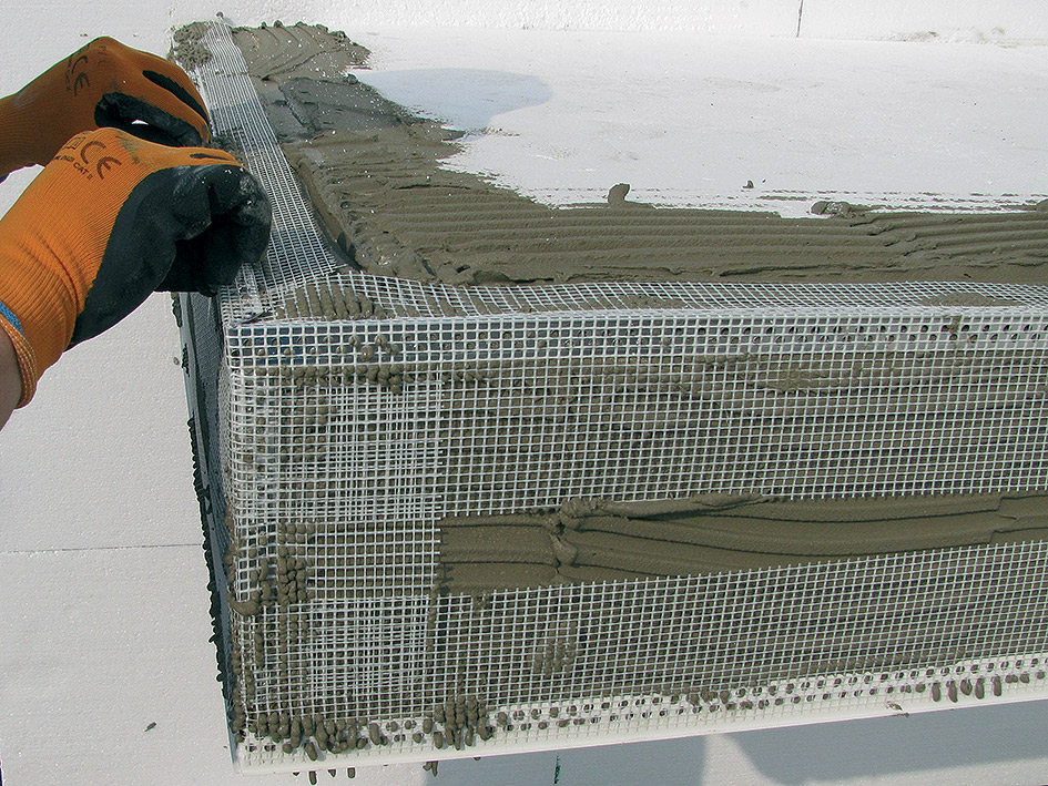 Lepidlo, ktoré sa vytlačí cez oká výstužnej mriežky, sa zahladí. Armovacia tkanina sa kladie v pásoch s presahom min. 100 mm. Presah min. 100 mm platí aj na napojovanie na vystuženie hrán. Hrúbka výstužnej vrstvy sa musí pohybovať v rozpätí od 3 do 5 mm.