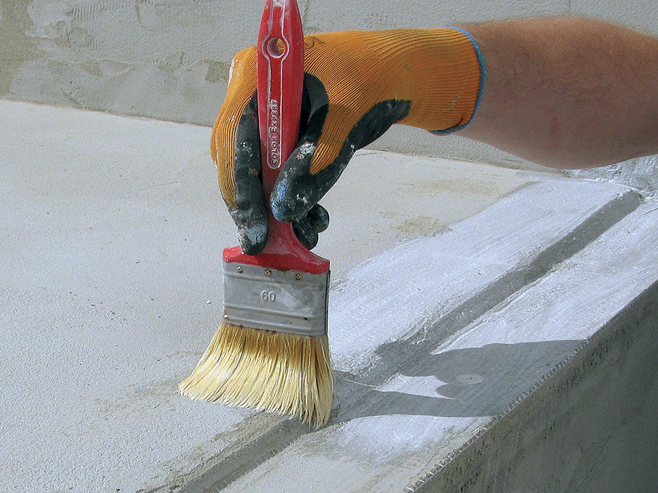Na pripravený podklad sa hladkou hranou hladidla nanesie v tenkej vrstve kontaktná