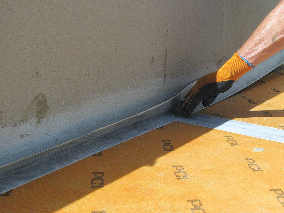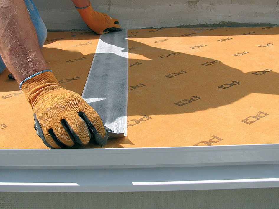 Pásy sa ukladajú v smere spádu konštrukcie. Spoje pásov sa utesnia samolepiacou butylovou páskou. Spoje podlahy a steny a napojenia na ostatné konštrukcie (kov, drevo, plast a pod.) sa rovnako utesnia butylovou páskou. V oblasti sokla na zvislej stene treba aplikovať hydroizolačnú stierku. Zamedzí sa tým prenikaniu vlhkosti do podkladu cez keramický sokel alebo cez finálnu omietku.