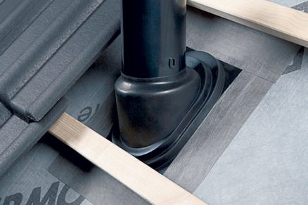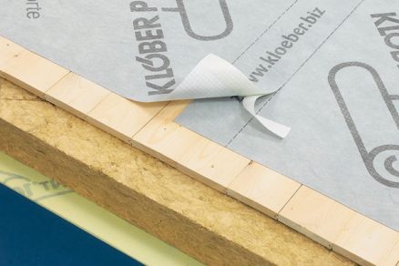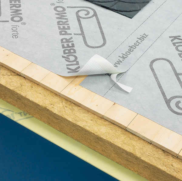 Na realizáciu vetrozábran a zamedzenie prenikaniu vody do jednotlivých vrstiev strešnej konštrukcie pri malom sklone strechy sa často v praxi používajú poistné hydroizolácie s integrovanou lepiacou páskou na jednom okraji. Výhodou použitia tohto typu fólie je možné spojenie jednotlivých pásov fólií, respektíve možnosť realizovať jednoduché utesnenie rôznych priestupov cez strešnú rovinu (obr. 4).