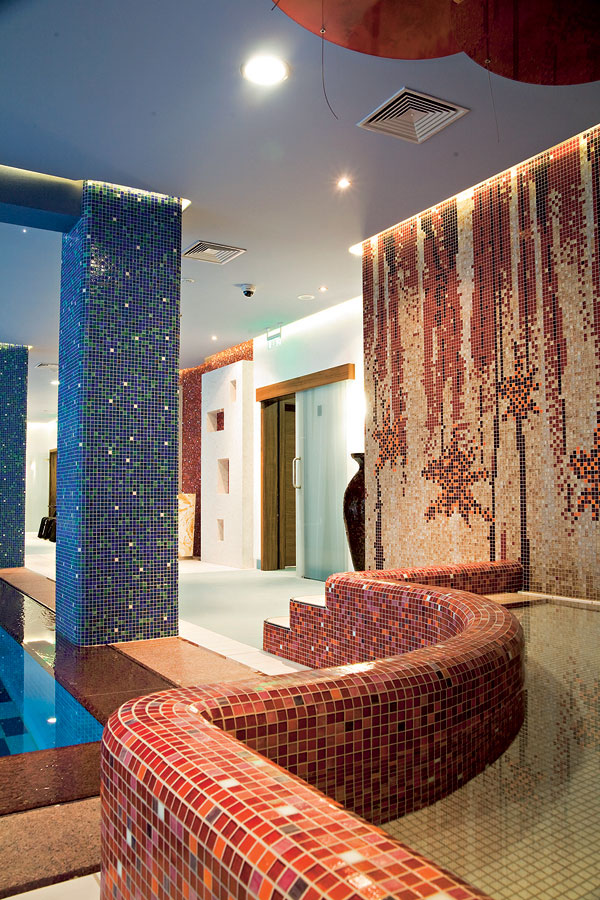 V prípade wellness centra tohto hotela sa hydroizolačná vrstva nanášala priamo na podklad. Diagnostikou sa totiž potvrdila vysoká kvalita podkladovej vrstvy. Podklad bol súdržný, dostatočne pevný a rovný, takže ho nebolo treba vyrovnávať. Pred začiatkom aplikácie hydroizolačnej stierky sa podklad dôkladne očistil. V ďalšom kroku sa zabezpečili detaily (dilatácie, priestupy a styky dvoch rôznych konštrukcií alebo materiálov) prekrytím elastickým polyesterovým pogumovaným pásom. Pás sa na podklad lepil hydroizolačnou stierkou. Po zvládnutí kritických detailov sa na navlhčený podklad naniesla pružná dvojzložková hydroizolácia s atestom na styk s pitnou vodou. Pružnú stierku je vhodné aplikovať na konštrukcie, v ktorých sa môžu nachádzať mikrotrhliny vznikajúce ako dôsledok procesu zmrašťovania. Práca na vodorovných, šikmých i zvislých plochách sa zjednodušila aj vďaka tixotropným vlastnostiam stierky.