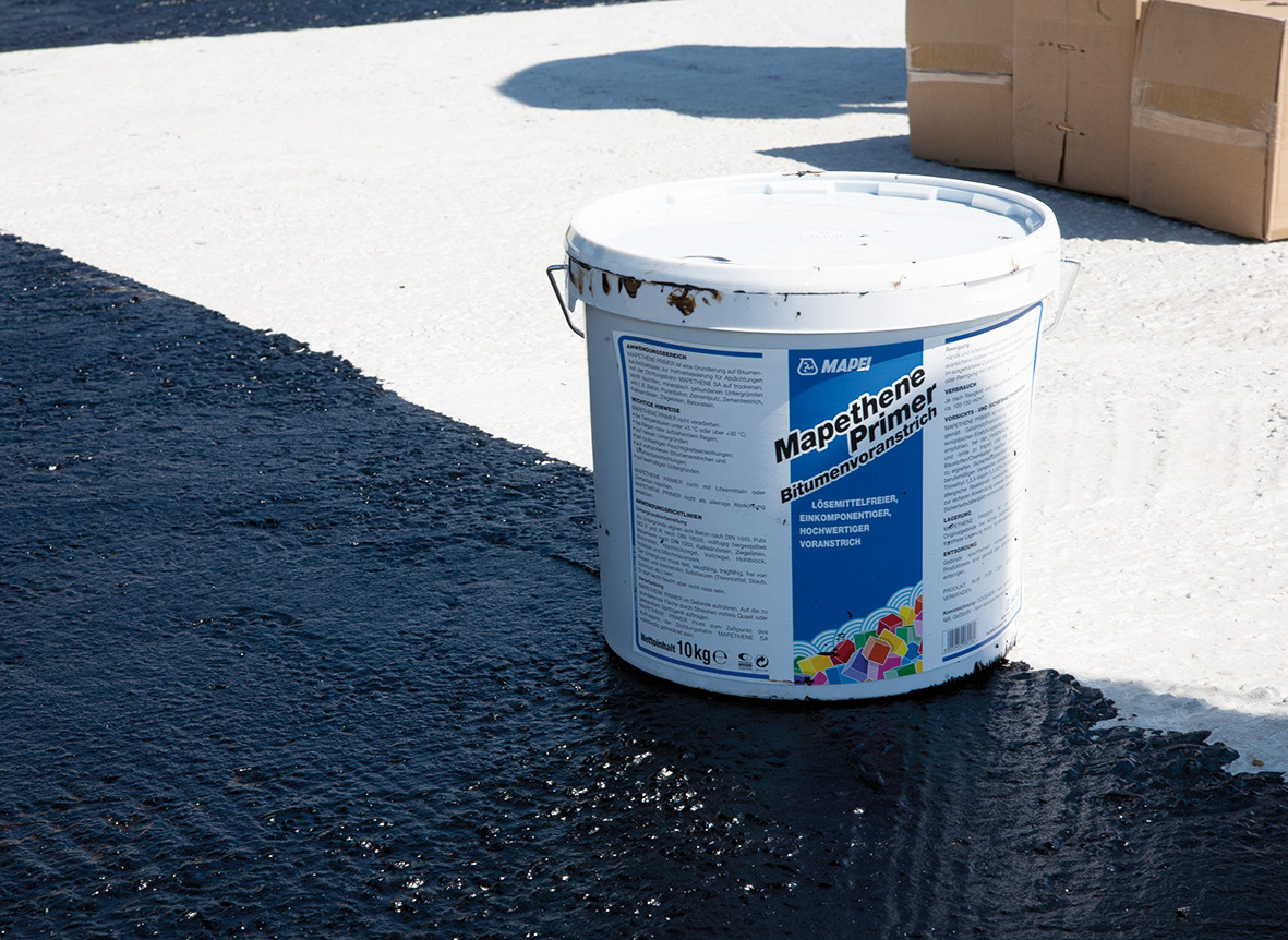 Nerovnosti povrchu väčšie ako 5 mm je potrebné vyrovnať rýchloschnúcou cementovou maltou. Na pripravený podklad sa aplikuje základný náter na zlepšenie prídržnosti samolepiacich hydroizolačných pásov. Základný náter sa premieša v originálnej nádobe a nanesie na povrch štetcom, valcom alebo vhodným striekacím zariadením. Pred aplikáciou samolepiacich hydroizolačných pásov musí byť základný náter úplne suchý (čas vysychania približne 45 min).