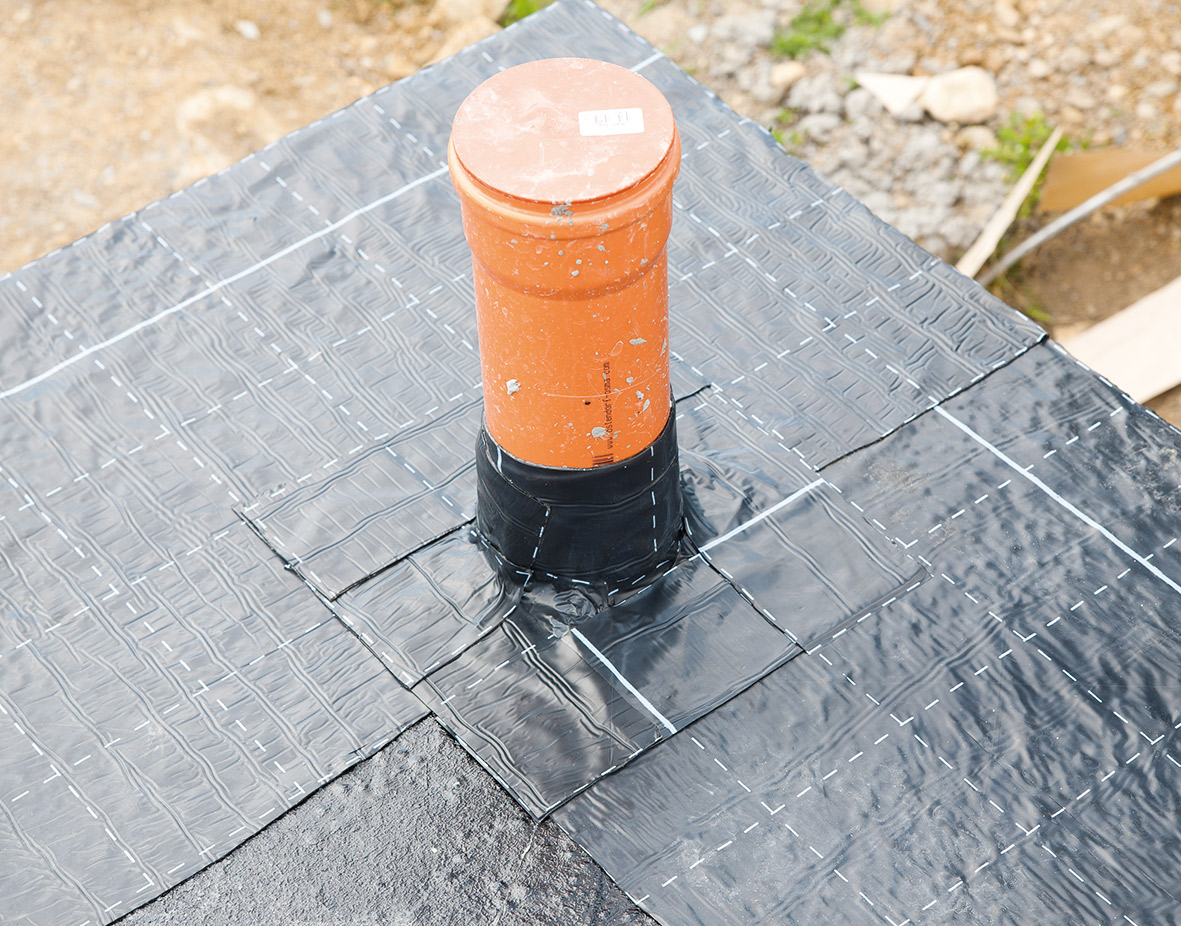 Jedným zo systémových riešení na izolovanie základových dosiek, či stavebných konštrukcií umiestnených pod úrovňou terénu je samolepiaca bitúmenová fólia, ktorá je okrem ochrany pred zemnou vlhkosťou určená aj na ochranu pred radónom. Hydroizolačné systémy na báze bitúmenu sa aplikujú za studena. Odbúrava sa tak riziko roztavenia asfaltového pásu v spoji, príp. nedostatočného natavenia na podklad ,ktoré v niektorých prípadoch môže viesť aj k zatekaniu do stavebnej konštrukcie. Súčasťou hydroizolačného systému sú aj doplnkové výrobky na riešenie drobných detailov.