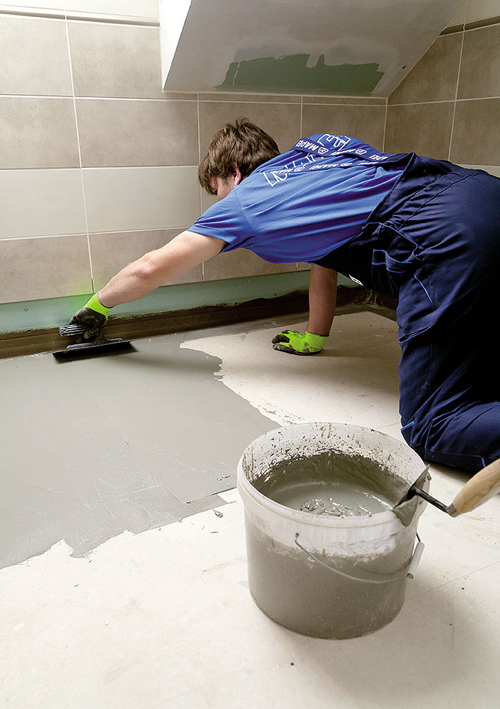 • Náradie a pomôcky: zubové oceľové hladidlo, plastová nádoba, nízkootáčkové miešadlo, priemyselný vysávač, ochranné rukavice,