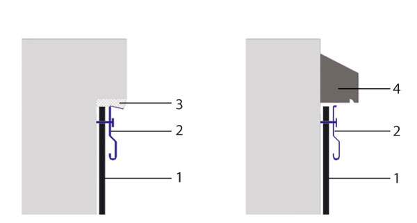| Ukončenie hydroizolácie nad terénom 1 – hydroizolačný povlak, 2 – klampiarska lišta, mechanicky prikotvená na zvislú konštrukciu, 3 – dotmelenie trvalo pružným tmelom (PUR alebo asfaltový tmel), 4 – mechanicky ukotvený prefabrikát |