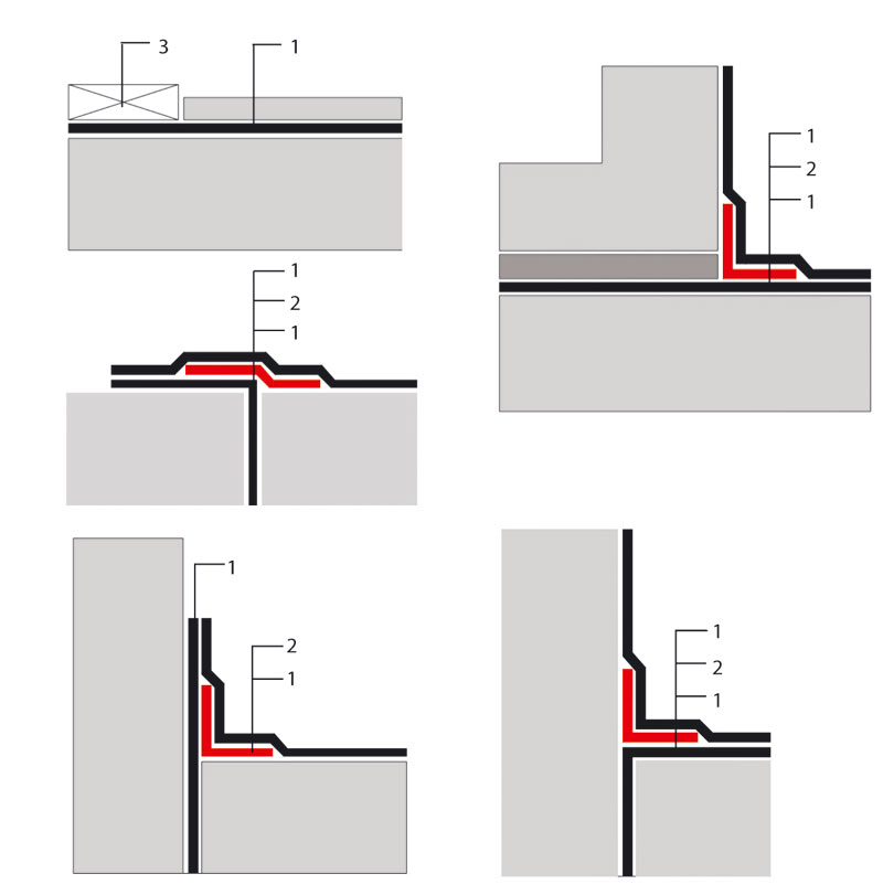 - všetky detaily musia byť zosilnené dodatočným pásom rovnakého alebo špecializovaného izolačného materiálu,
