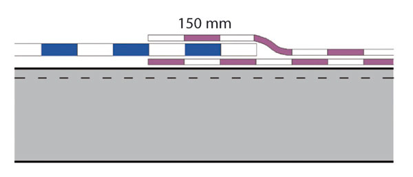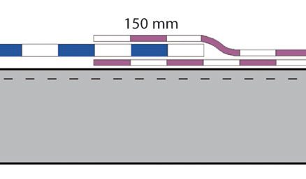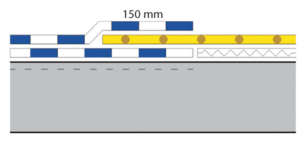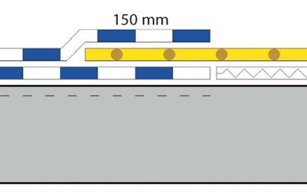 - minimálna šírka zosilňovacieho pásu je 300 mm, t. j. 2 × 150 mm,